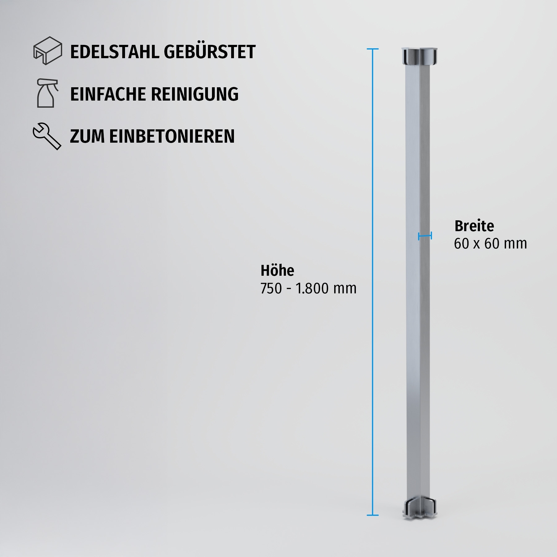 Eck-Pfosten System A 60x60 mm zum Einbetonieren