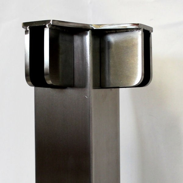 Dieser Eckpfosten wird bei einer Glaszaun-Anlage verwendet.